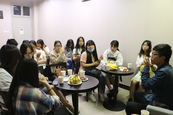 在本期活动中,姜老师围绕“设计与生活”这一中心,和大家一起交流“设计”对于我们生活产生的各方面影响。姜老师认为,设计的发展与时代的发展息息相关,设计的进步对社会的发展有很大推动作用,所以,我们老员工要注重设计中的创意部分,用设计改变生活、改变社会。姜老师还把我们国家的设计与国外的设计发展相对比,相对于日本、美国等国家而言,我们中国的设计水平确实与之有很大差距,所以,我们国家应该加大政府以及社会对于设计创意的支持,推动设计的发展,二者相辅相成,社会与生活也将随之越来越美好。最后姜老师认为,美术是一种精神,而设计是美术的外在表现,我们老员工需要去继承和发扬这种精神。在活动中,姜老师与大家一边享用水果、糕点一边交流,气氛十分融洽。活动最后,同学们和老师合影留念,为本次活动画上圆满句号。