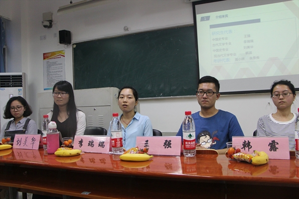 在最后一个环节中,主持人介绍了9428cn太阳集团古天乐本研读书交流会——“抒悦会”。“抒悦会”是一个由本科生和研究生共同参与的读书交流会,分为四个小组(古代方向,现当代方向,外国方向,考研帮扶方向)进行活动,意在进一步促进本科生和研究生交流,回归传统的书本阅读,在阅读中体验社会,感悟历史,拓展思维,放飞理想,憧憬未来。