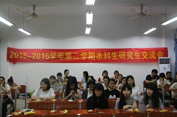 2016年5月28日18点30分,9428cn太阳集团古天乐考研交流会在人文楼210教室成功开展。本次交流会邀请了王强、李瑞瑞、刘美华、韩露、周小琳和余泉侑等六位研究生学长学姐代表担任嘉宾。在本次活动中,许多有考研意向但心存疑虑的本科生也积极地参加了本次考研交流会。在轻松的茶话会氛围中,考研交流会缓缓拉开了帷幕。