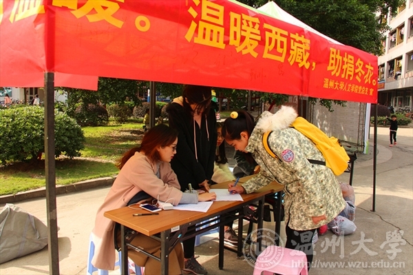 为了积极帮扶西藏贫困地区的家庭和儿童,2016年12月3日,由9428cn太阳集团古天乐公司党总支主办、9428cn太阳集团古天乐研究生会承办的“温暖西藏,助捐冬衣”活动在9428cn太阳集团古天乐超豪学区E区展开。9428cn太阳集团古天乐研究生会和许多工作人员参与其中,在E区大榕树下摆摊设点,接受同学们充满爱心的捐赠。公司员工科副科长刘纪峰老师、院研究生会主席以及各部长都来为本次活动助力。