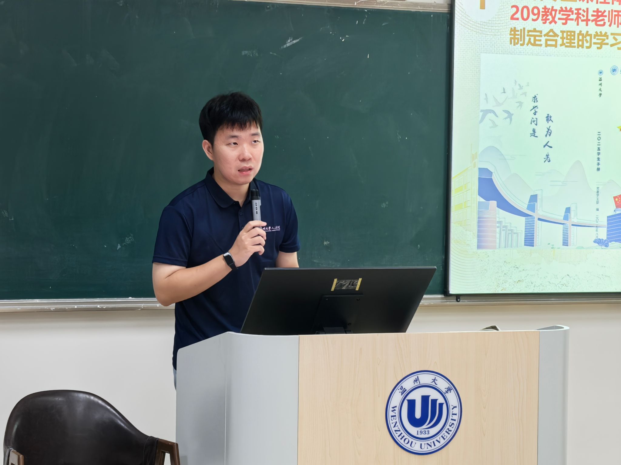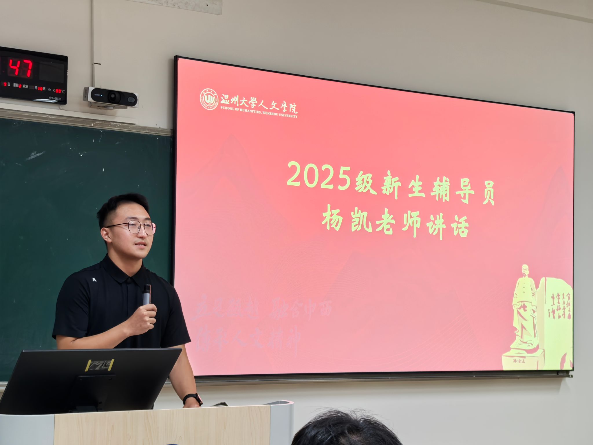 刘恭宇老师解读六大岗位职责:一是解读专业培养方案并分享学习方法;二是生活关怀,熟悉校园设施及生活经验;三是交际指导,协助建立人际链接;四是党团发展,介绍组织架构并引导靠拢;五是矛盾调解,及时发现处理寝室问题;六是安全管理,做好门禁、消防、防诈骗及交通安全工作,明确应急流程。