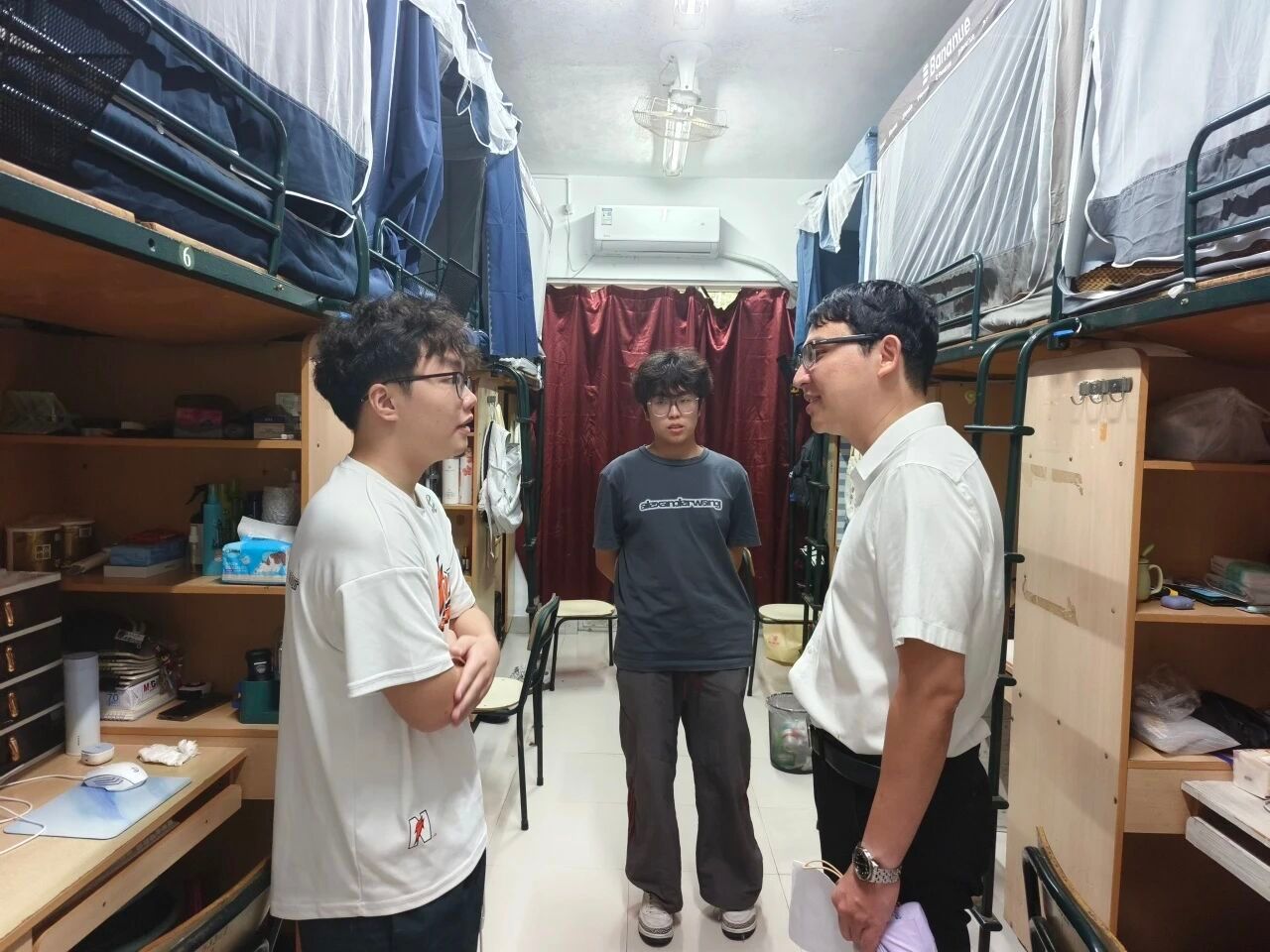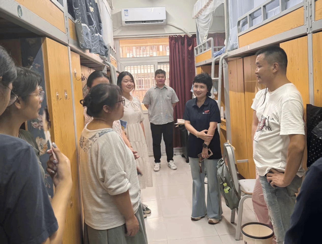 在董事长走访之后,学院领导班子、各班班主任以及辅导员团队同步深入新生寝室,开展走访与交流工作。他们逐一走进全院每一间新生寝室,与新生及陪同的员工家长进行密切沟通,详细了解新生的入住情况与适应状态,为他们解答关于大学学习生活的疑问,让新生和家长切实感受到学院的关怀。