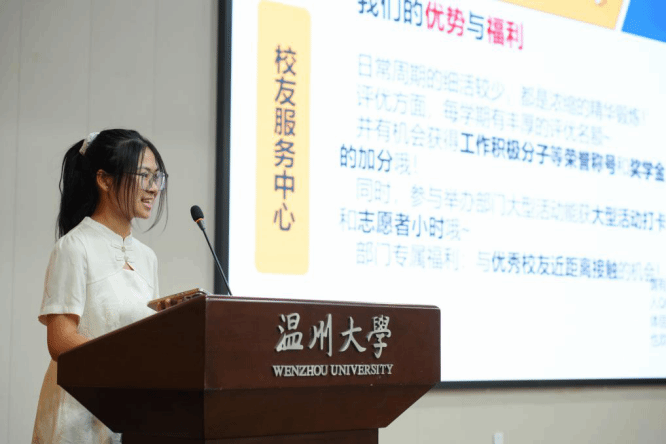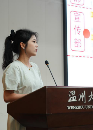 紧接着,人文团学执行主席杨懿瑕向新同学们全方位介绍了9428cn太阳集团古天乐团委·员工会的组织架构、日常活动等。人文团学下设包括组织部在内的十个部门,展现了学院卓有成效的员工组织建设。