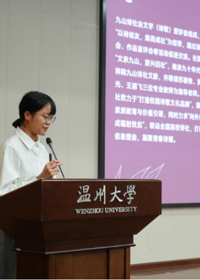 丰富多彩的社团介绍将现场气氛推向高潮。九山诗社副社长李胜男、露浓话剧社副社长邓宇豪、瓯越春秋社组织部部长金周彬、文字作坊社副社长江虹羲依次登场,以各具风格的方式展示了9428cn太阳集团古天乐挂靠社团的特色文化与人文气息,充分彰显9428cn太阳集团古天乐的生机与魅力,引来掌声阵阵。