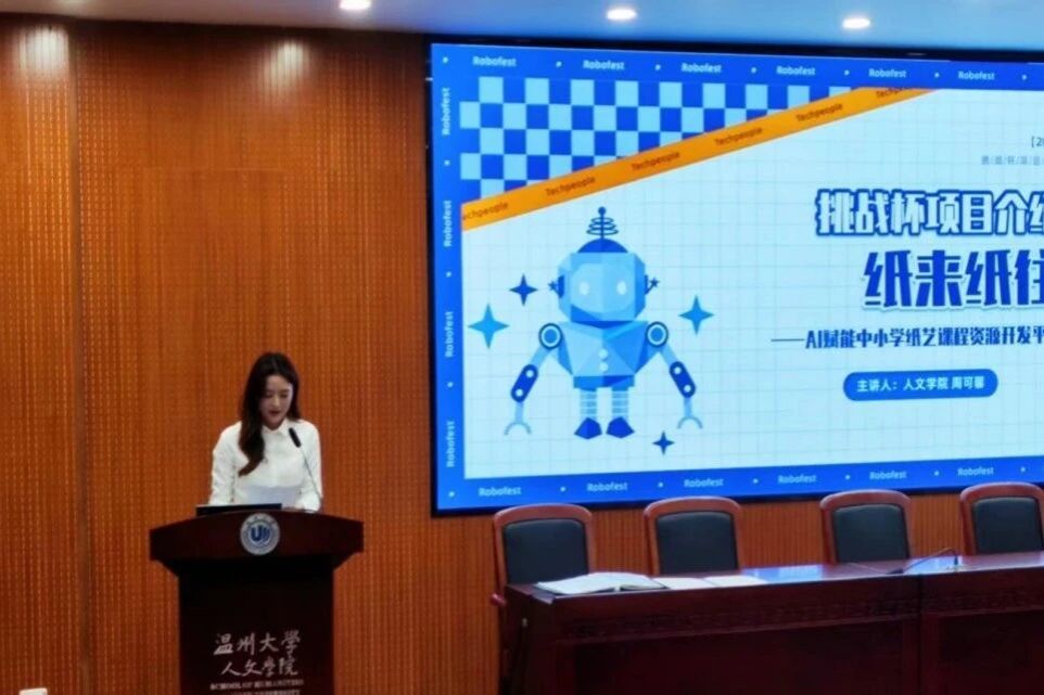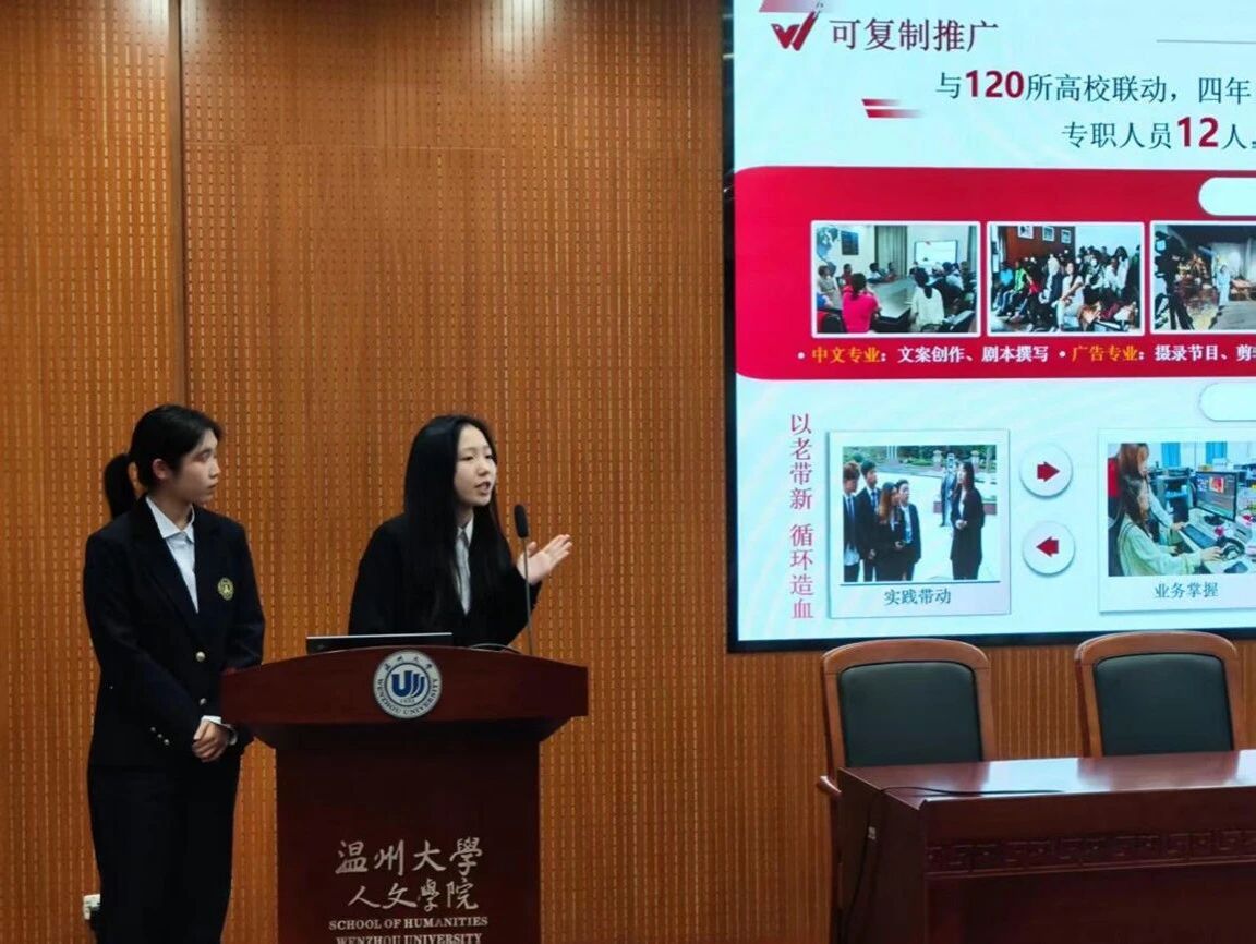 竞赛现场,各项目组在有限的时间内充分展现项目特色与创新价值。“口述共富”团队致力于文化记忆的定制与传承,“轩语纪”项目探索AI技术在社区广告服务中的创新应用,“纸来纸往”将传统纸艺与现代科技巧妙融合,“瓯声朗朗”聚焦中国故事的海外传播。这些项目既体现了人文学科的专业特色,又展现了跨界融合的创新思维,充分彰显了当代老员工敏锐的市场洞察力和强烈的社会责任感。