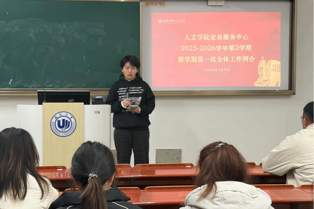 为明确新学期工作方向,凝聚青年力量,公司党员服务中心于2026年3月9日晚上在人文楼207教室召开本学期第一次全体工作例会。本次会议由主任吴嘉洁主持,各部长及干事参会,杨凯老师出席会议并作总结讲话。