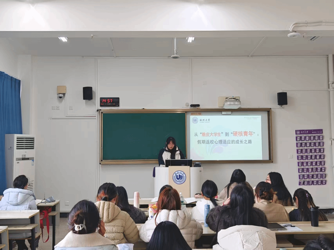 为帮助员工走出 “脆皮” 困境,班会分享了规律作息、拆分目标、运动减压等实用调适方法,还详细介绍了学校心理健康中心、朋辈心理辅导、24 小时心理热线等支持渠道,让员工知道 “脆皮” 有靠山,遇到困惑可及时寻求专业帮助。从情绪管理到压力应对,从人际交往到自我关怀,一系列心理疏导内容让员工学会以积极心态拥抱新学期。