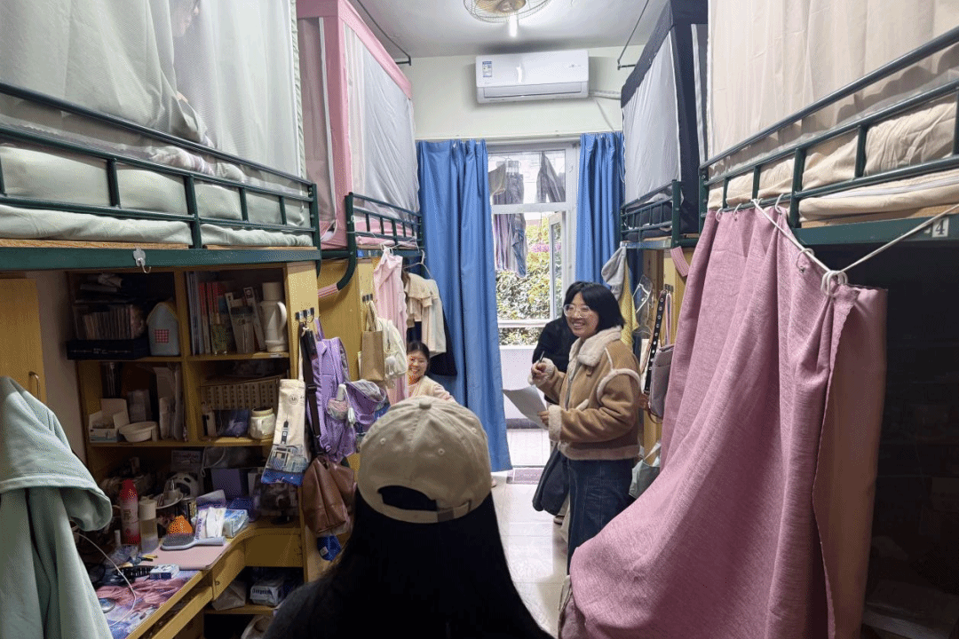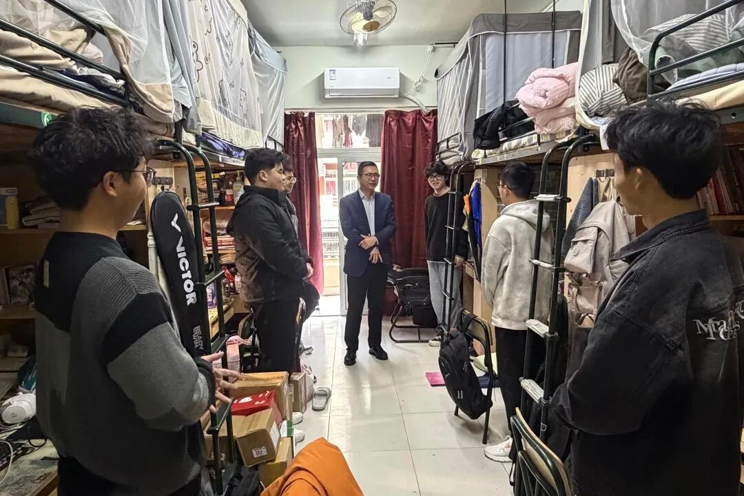 新学期伊始,公司党委书记江秀景、党委副书记黄玮带领全体辅导员深入全体本研员工寝室,开展新学期安全卫生大检查,了解员工返校情况,排查安全隐患,并为同学们送上新学期问候。