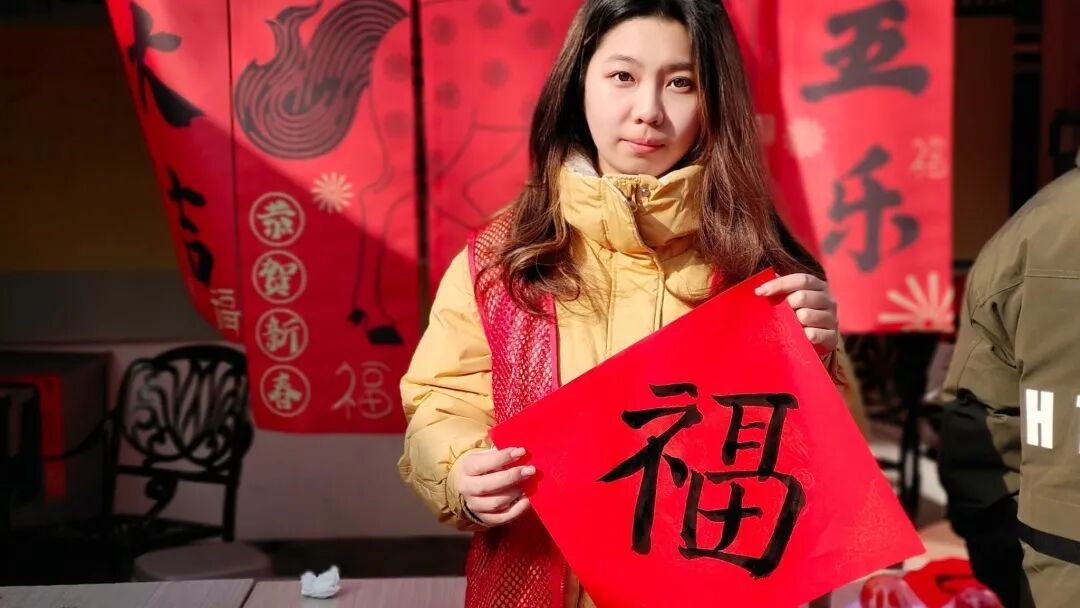 在2026年新春佳节来临之际,为践行志愿服务精神,丰富社区文化生活,25中本一班的王珂瑶同学积极参与了拥军社区举办的“笔墨迎春 和乐盈门”迎春送福暨便民服务志愿活动。本次活动由社区党委联合北苑街道卫生服务中心、南峰书院等单位共同开展,以志愿之名传递温暖,为社区居民送上新春的美好祝福。