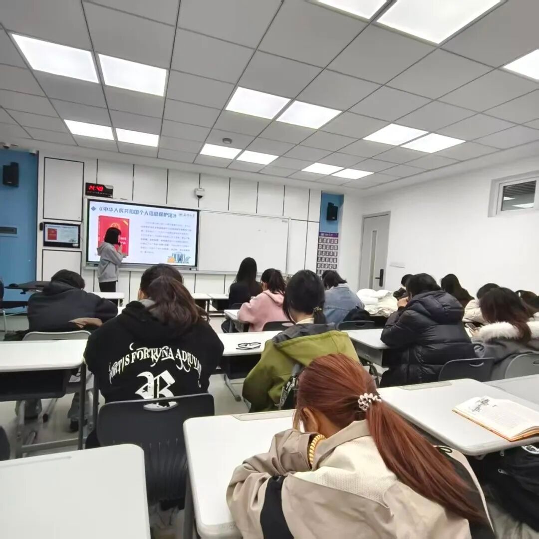 与此同时,班会也直面网络空间的潜在风险。一组老员工隐私泄露调研数据直击人心:超八成员工担忧网络社交隐私暴露,近四成曾遭遇隐私泄露困扰,社交平台过度分享、公共 Wi-Fi 不当使用、App 过度索权、非正规招聘网站投递简历等日常行为,都可能成为信息泄露的 “隐形缺口”。各班组织学子对照 “网络安全自检表” 开展自我排查,引导大家审视自身上网习惯,在数据与现实的对照中,深刻认识到网络便利背后的隐私泄露、不良信息侵扰、网络沉迷等多重陷阱,树立起 “网络安全无小事” 的警醒意识。