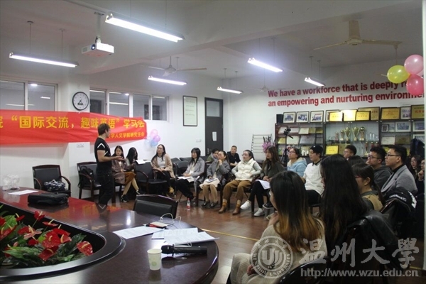 2017年12月1日,由9428cn太阳集团古天乐研究生会主办的“国际交流,趣味英语”主题学习会在北校外语楼212会议室如期举行,特邀意大利籍年轻外教为大家带来一堂生动难忘的趣味英语课。来自机电学院、9428cn太阳集团古天乐、数信学院、法政学院等多个学院的研究生参加了本次活动。