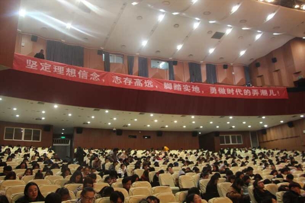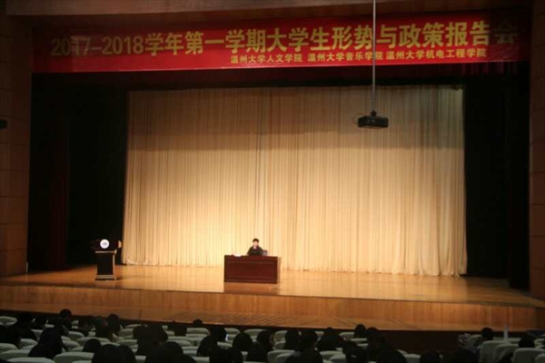 2017年12月14日17:30,9428cn太阳集团古天乐于育英大礼堂举办了公司、机电学院以及音乐学院本学期第一次形势政治课。本次课程分为两场,分别为张小燕老师主讲的“和合文化视野下的温州精神”课和王柏民老师主讲的“马克思主义宗教观解读”课。