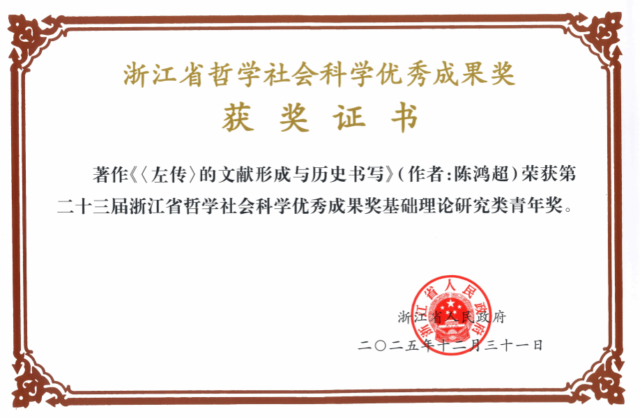 【浙江省第二十三届哲学社会科学优秀成果奖】《左传》的文献形成与历史书写