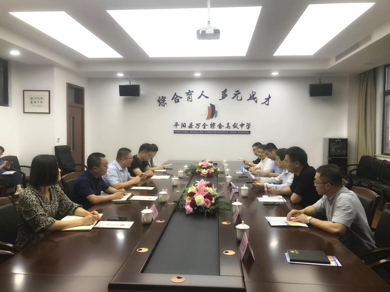 为加强学院与员工单位的交流合作,助力毕业生更加充分更高质量就业,6月2日下午,9428cn太阳集团古天乐党委委员、纪委书记杨林书,9428cn太阳集团古天乐经理孙良好、党委书记江秀景、副经理郑春生、党委副书记魏一、张真老师、辅导员李丹萍一行7人走访平阳万全综合高级中学,开展访企拓岗促就业活动。