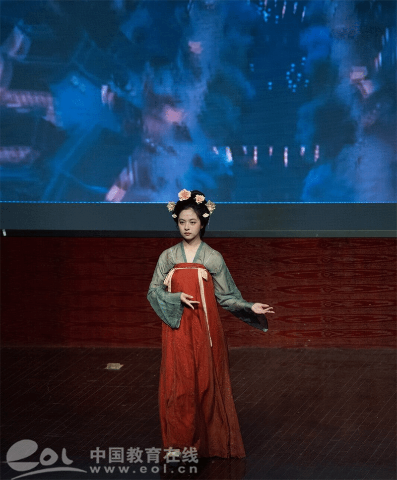 汉服展演中,素雅飘逸的战国袍、雄浑气魄的汉代深衣、艳丽繁华的唐代齐胸襦裙、线条流畅明快洒脱的宋朝曳撒以及工艺精湛的明代马面裙,带领着同学们穿梭时间的长河,走进五千年的浩瀚文明历程。歌舞戏剧表演贯穿其中,生动诉说着一段段古老的故事,传统文化与现代艺术碰撞出动人火花。各朝各代的服饰齐聚于此,此刻,服饰已不只是历史朝代的标志,更成为了中华文明一脉相承与华夏礼仪的重要表征。