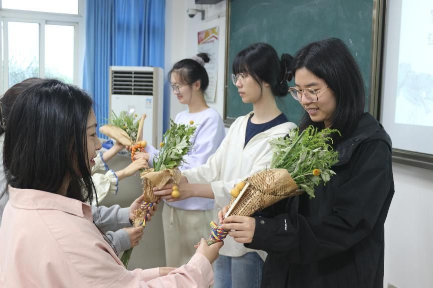 国学社的成员们手持艾草花,为每一位即将离校的毕业生送上最真挚的祝福。毕业生们接过艾草花,脸上洋溢着笑容,他们表示,这是他们收到的最特别、最有意义的毕业礼物。