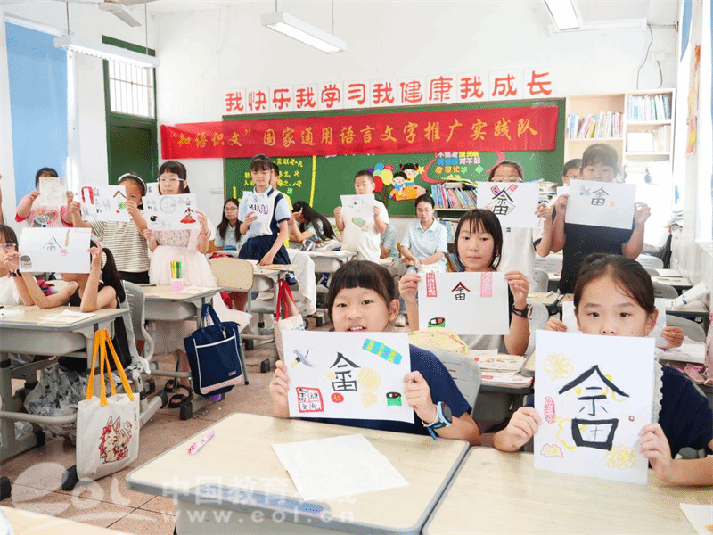 7月11日,实践队来到钱库镇第四小学,与孩子们一同推开了通往汉字世界的知识大门。