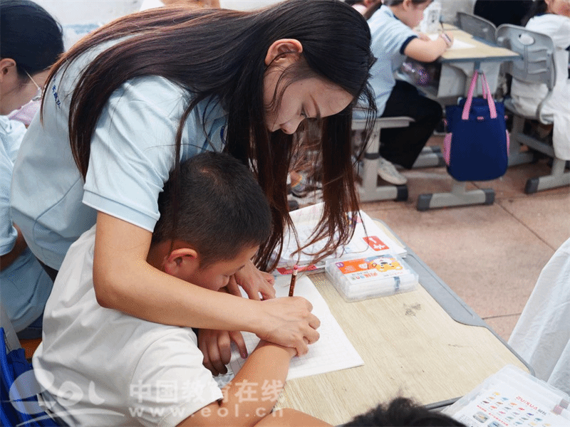 孩子们一笔一划地认真写