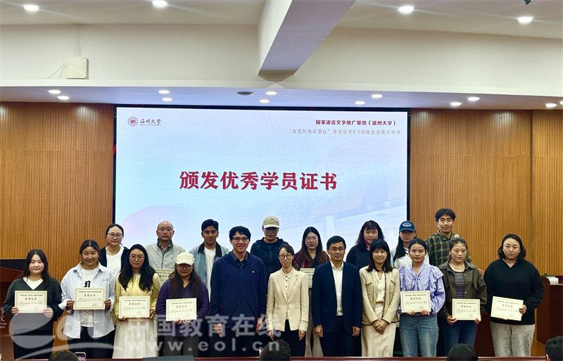 泽波、杨奇、孔庆杰、俄波初、丁海龙等五位学员代表上台分享了学习收获。陈鸿超作总结讲话,他说,这八天的时光,见证了学员们勤学苦练的身影,展现了阿坝教师真诚、上进的精神风貌,相信这次培训能够成为连接两地友谊的桥梁,共同为推动教育发展、促进民族团结、铸牢中华民族共同体意识贡献力量。