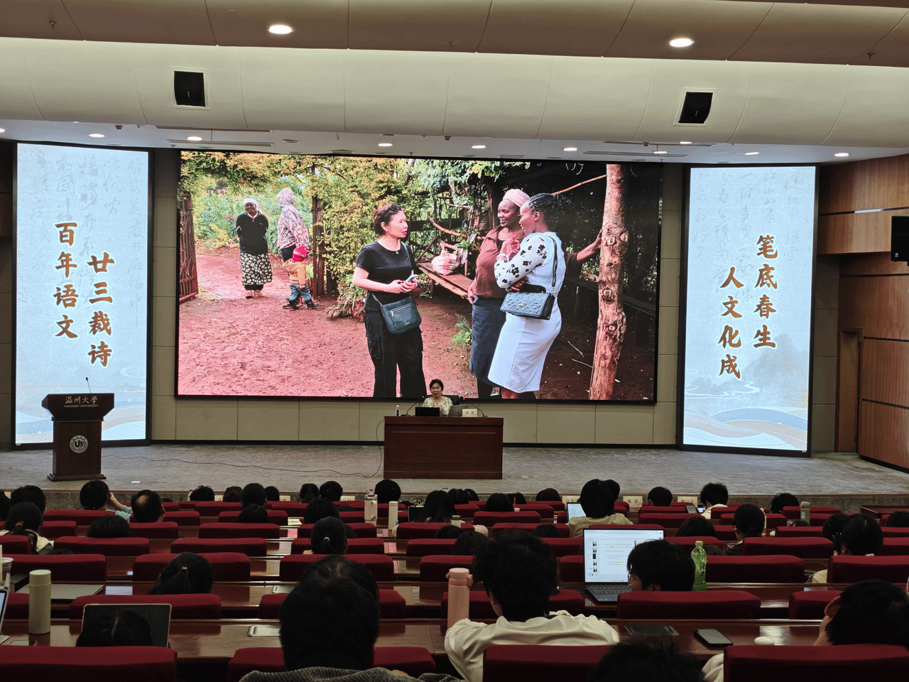 捐赠仪式后,张翎以“从书斋到田野:一个作家的写作旅程”为题,开启了本届文学周的“罗山讲堂”。她坦诚地分享了自己的创作心路,从早期在书斋中的阅读积累,到后来走向田野的实践探索,完整呈现了一个作家的成长轨迹。