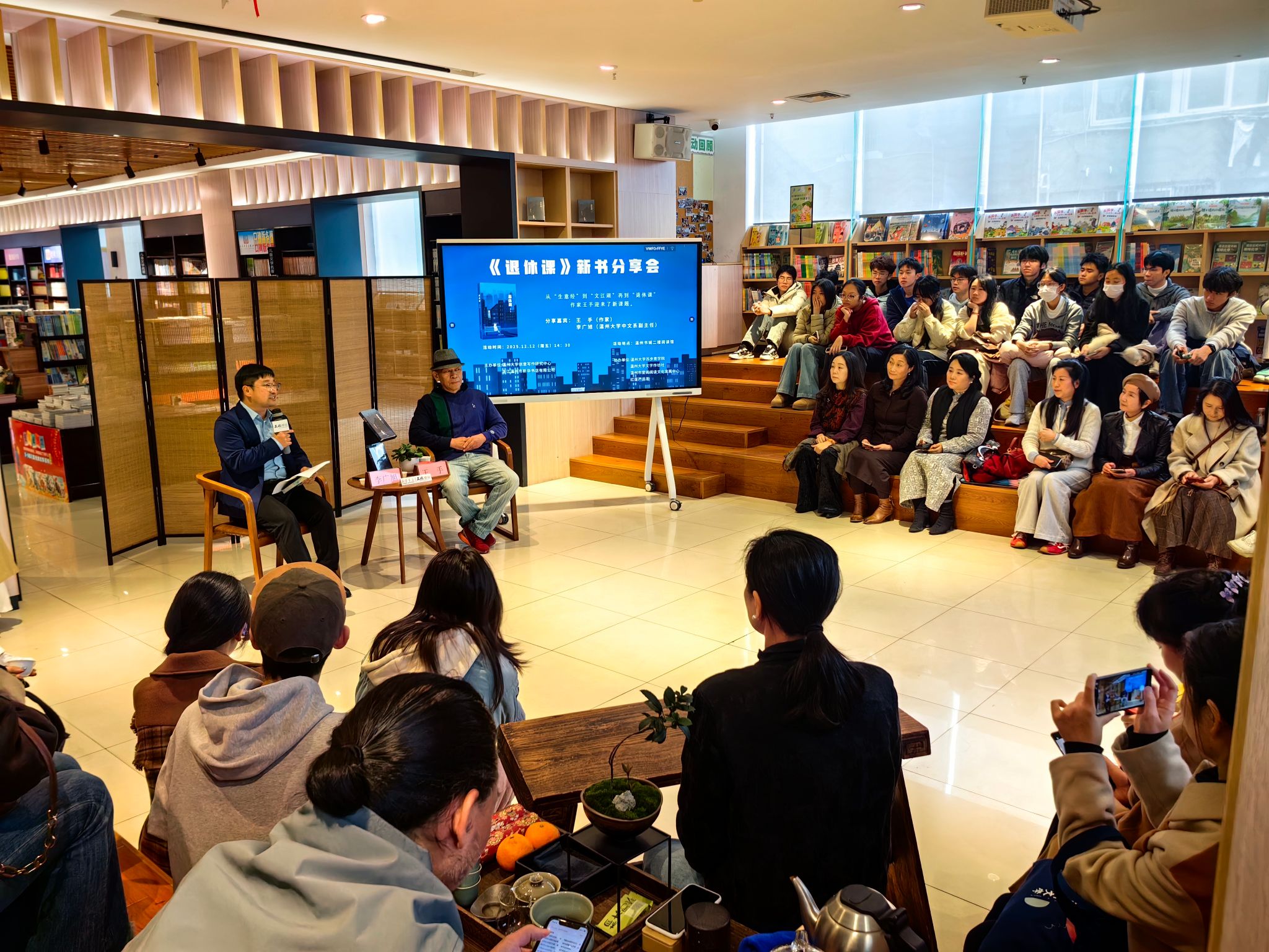 此次新华大讲堂不仅是《退休课》的专场分享,更成为一堂关于 “观察、转化、坚持” 的写作启蒙课。王手谈到,有价值的创作源于温州老城街巷、生活碎片与真实情绪,写作是对生命的预习与复盘,能帮助人们更好地体会日常烟火气。活动以文学为桥,既践行了 “厚植农情、浸润书香” 的主题,也为温州本土文化传播与全民阅读推广注入新活力。