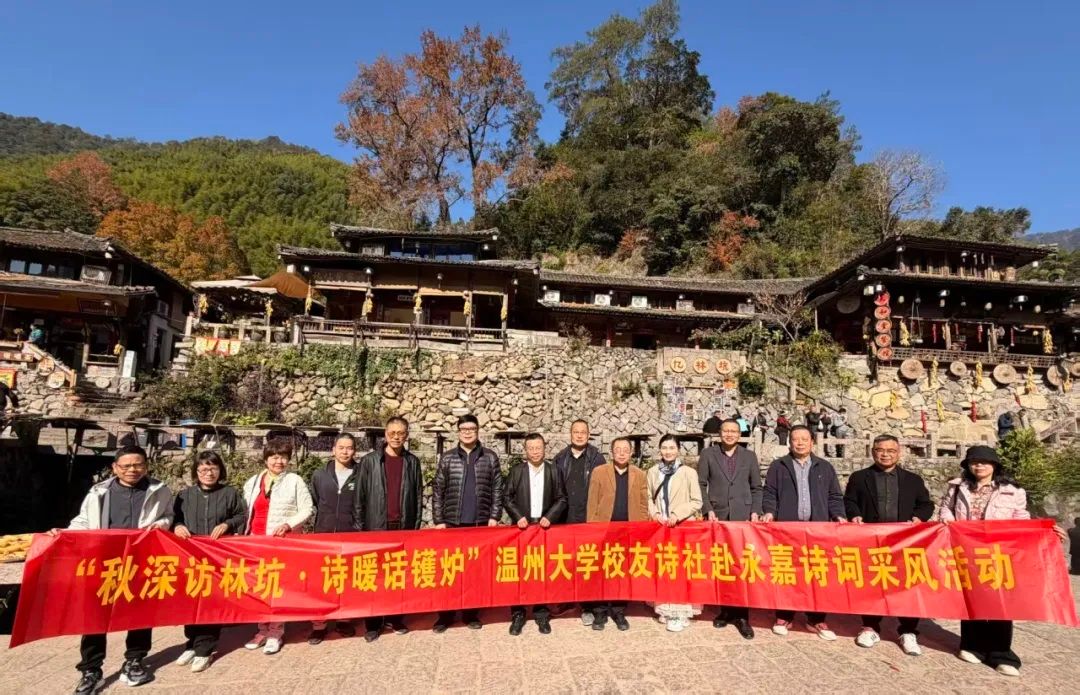 乙巳孟秋即公元2025年12月7日,节逢大雪,风和日暖,天朗气清。温大员工诗社组织会员赴永嘉开展“秋深访林坑,诗暖话镬炉”诗词采风活动,这是温大员工诗社2025年4月成立以来首次组织开展的大规模诗词采风活动。